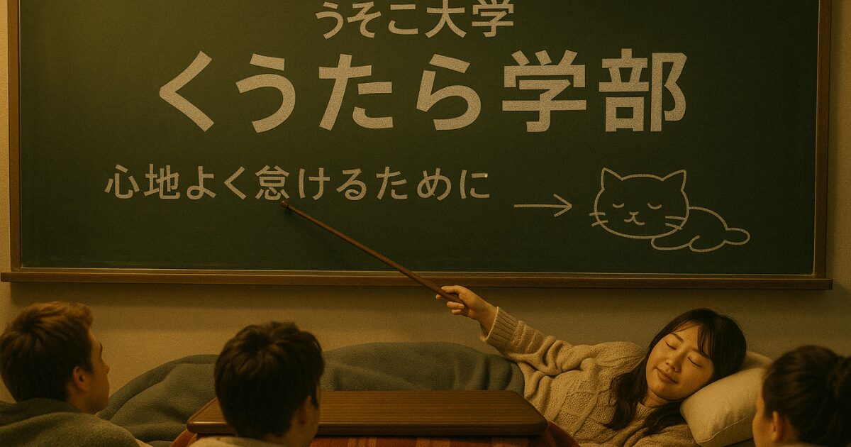 ぐうたら学部では、「やらない勇気」「ゆるめる才能」「見て見ぬふりの哲学」を学際的に研究します。
