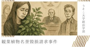 - 判決後、原告のホーム画面に「ちょっと救われた気がする」と表示された(自動生成AI背景による感情表現)。